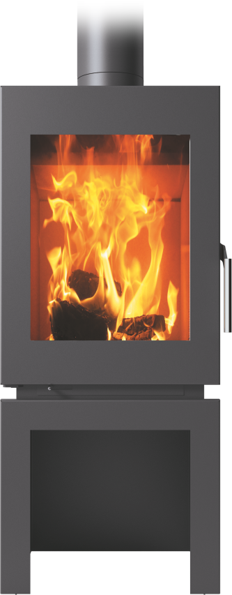 Designový podstavec pro modelovou řadu krbových kamen RI nabízí netradiční řešení instalace.
