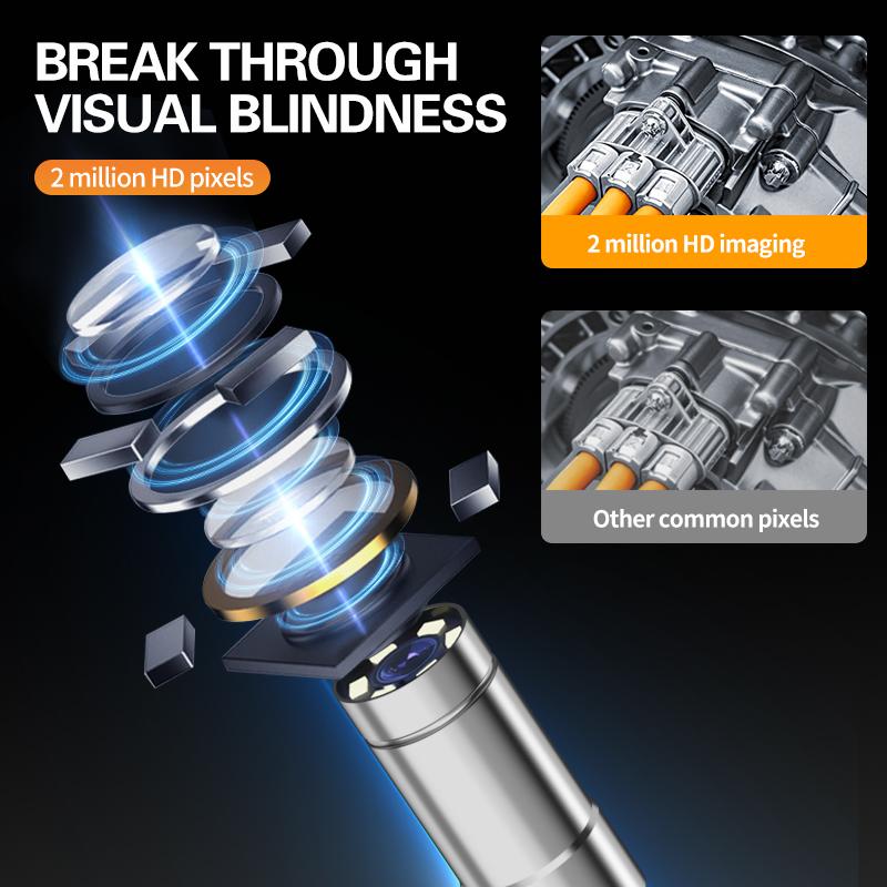 Tento model je vyroben z odolných materiálů, což zaručuje jeho dlouhou životnost i při používání v náročných podmínkách. Disponuje flexibilním 1,5metrovým měkkým kabelem a kamerovou hlavicí o průměru pouhých 6 mm, což umožňuje průchod i velmi úzkými prostory. Díky motorickému ohýbání kamerové hlavice v úhlu 180°, je zajištěna precizní kontrola i v komplikovaně přístupných oblastech. Přístroj odolává vlhkosti, vyšším teplotám a nabízí ochranu proti přehřátí, což zvyšuje jeho spolehlivost a praktičnost v náročném prostředí.