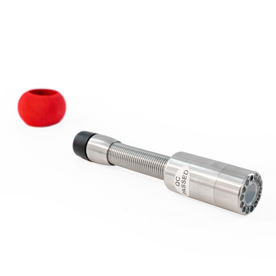 Náhradní kamerová hlavice pro inspekční kameru OXE InspCam 30 SD. Kamerová jednotka je umístěna v červené pěnové ochraně, která chrání kamerovou jednotku před jejím poškrábáním nebo zničením.