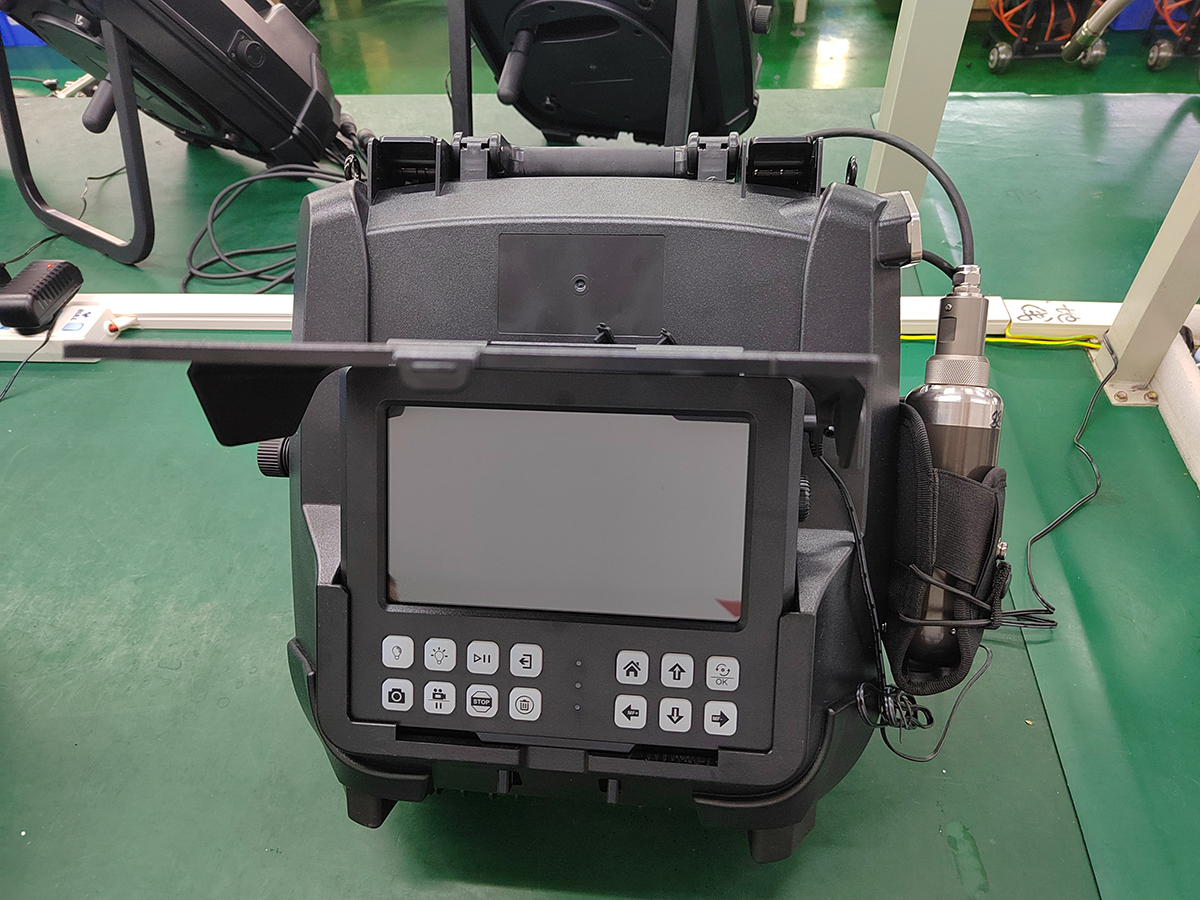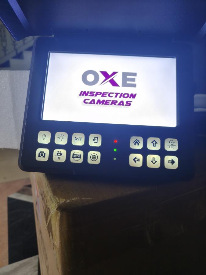 Ovládací jednotka OXE ChimCam Profi 360 je navržena pro spolehlivý provoz v náročných podmínkách. Je odolná vůči povětrnostním vlivům a vybavena sluneční clonou, která zajišťuje výbornou čitelnost displeje i na přímém světle. 8" barevný HD IPS LCD monitor (1280 × 720 px) poskytuje jasný a detailní obraz při každé inspekci. Předinstalované funkce zahrnují záznam videa, fotografií a zvuku přímo na USB úložiště. Vestavěná dobíjecí Li-ion baterie 6800 mAh zajišťuje dlouhou výdrž pro terénní práci bez nutnosti napájení (až 4–5 hodin provozu).